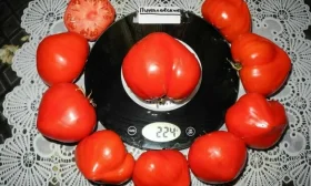 Главная отличительная комбинация сорта – компактный, низкорослый куст, не превышающий 60 см, и при этом крупные, массой до 300 граммов, плоды сердцевидной формы. Такое сочетание не является типичным: обычно крупноплодные сорта имеют мощные, высокорослые кусты. Эта особенность делает Пикалевские особенно ценным для выращивания в открытом грунте и в зонах рискованного земледелия, где высокие растения могут страдать от ветров.
