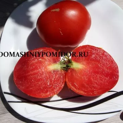 Мякоть очень мясистая, сахаристая на изломе, с небольшим количеством семян и многокамерная. Такая структура напрямую связана с крупным размером: масса плодов достигает заявленных 300 граммов. На первых, нижних кистях томаты часто бывают наиболее крупными. Плодоношение дружное, в кисти обычно формируется от 3 до 5 завязей, которые успешно наливаются благодаря детерминантному типу роста и компактности куста.