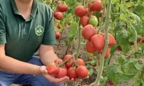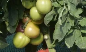 - Подвязка обязательна с самого начала. Стебель по мере роста фиксируют к надежной шпалере мягкой лентой или шпагатом «восьмеркой». Отдельно подвязывают каждую тяжелую кисть, особенно с крупными плодами массой 130-155 г, чтобы плодоножки не обрывались под собственным весом.