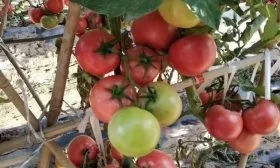 В конце сезона в теплице прищипывают главный стебель, оставляя над последней цветочной кистью 2-3 листа для питания. Из-за крупных и тяжелых кистей надежная подвязка нужна не только для основного стебля, но и для самих плодовых кистей, чтобы они не отломились под весом наливающихся томатов.