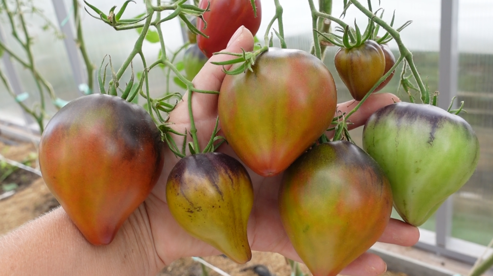 Именно необычный цвет, описанный как «изумрудно-розово-пурпурно-желтый с антоциановой шапочкой», является ключевым достижением и визитной карточкой сорта. Такая палитра редко встречается у томатов и стала возможной благодаря комбинации разных пигментов в кожице и мякоти. Антоциановая «шапочка» — темное пятно у плодоножки, усиливающееся на солнце, — добавляет плодам декоративности и указывает на наличие полезных для здоровья антоцианов.