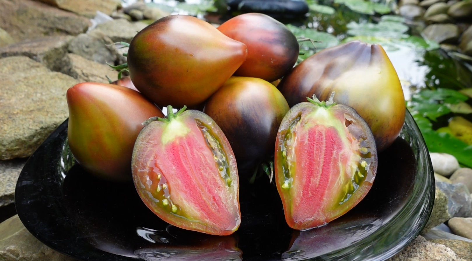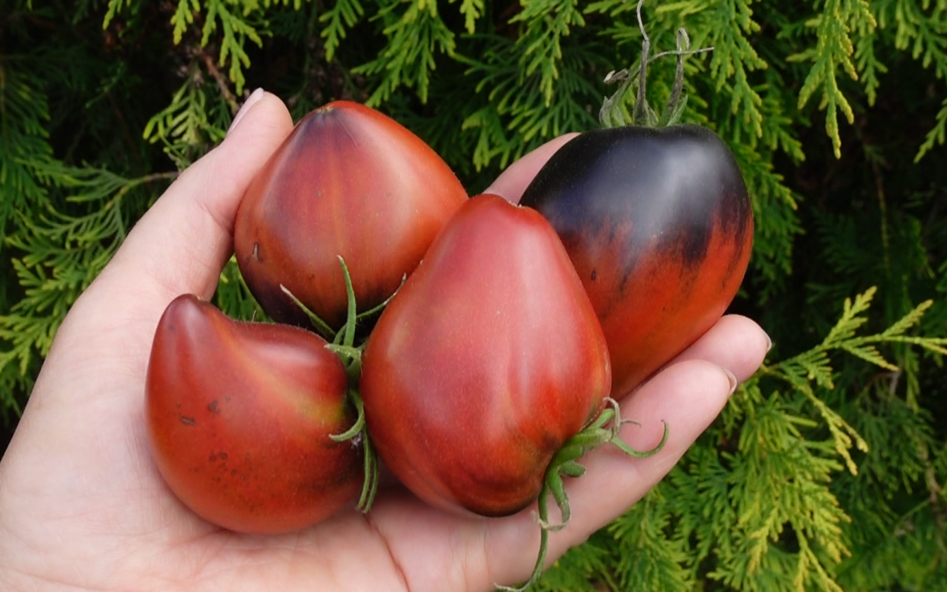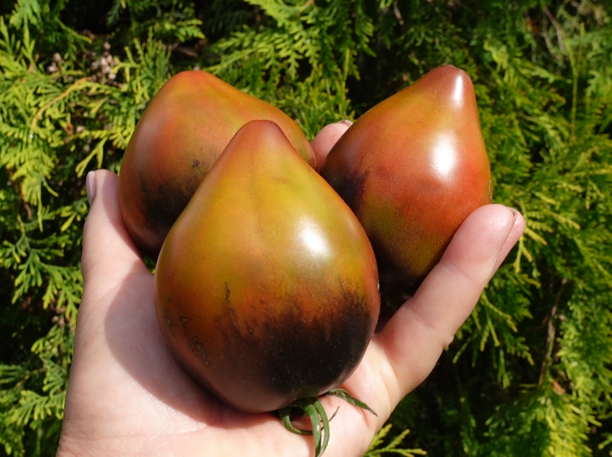 Интенсивность этой шапочки напрямую зависит от уровня освещенности. В теплице, где свет более рассеянный, антоциановый окрас может быть менее выраженным, чем у плодов, созревающих в открытом грунте под прямым солнцем. Каждый томат получается уникальным, с неповторимым рисунком.
