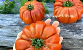 Цветочные кисти формируются простые или промежуточного типа (с разветвлением). На каждой кисти завязывается от 3 до 5 крупных плодов. Именно из-за их впечатляющей массы, которая может достигать 250-600 граммов, кисти сильно прогибаются под нагрузкой.