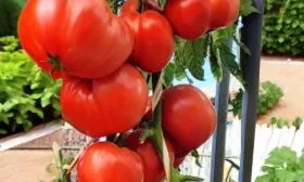 - Немедленно установите надежную опору или подвяжите растение к шпалере. Среднерослый, но мощный куст с массивными плодами легко полегает и может сломаться под собственной тяжестью или от ветра.