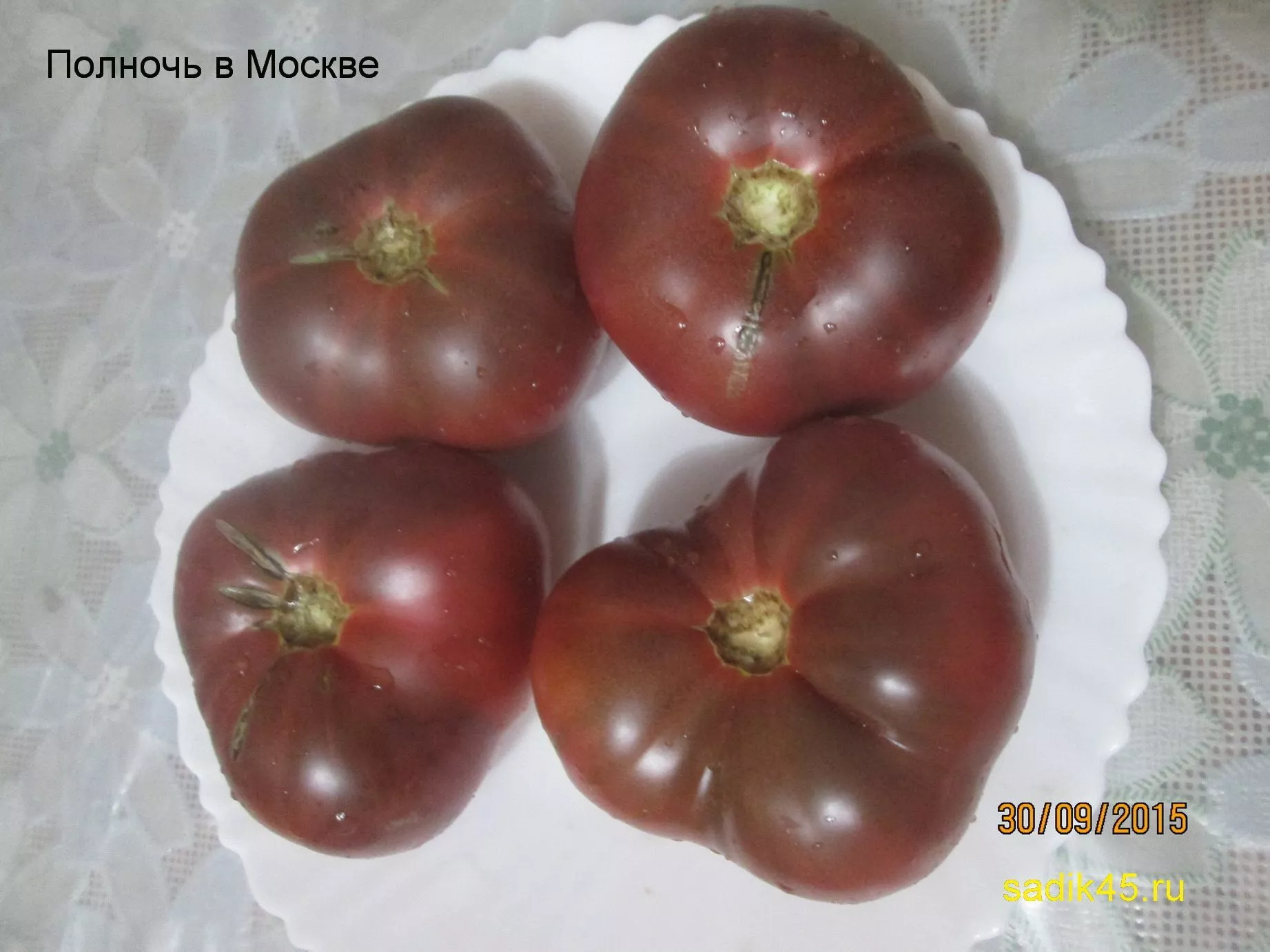 Наименование «Полночь в Москве» носит не только поэтический, но и описательный характер. Оно отсылает к глубокому, насыщенному цвету зрелых плодов, который в биологической спелости достигает темного красно-бордового, почти чернильного оттенка. Такая окраска часто свидетельствует о высоком содержании антоцианов — полезных для здоровья антиоксидантов.
