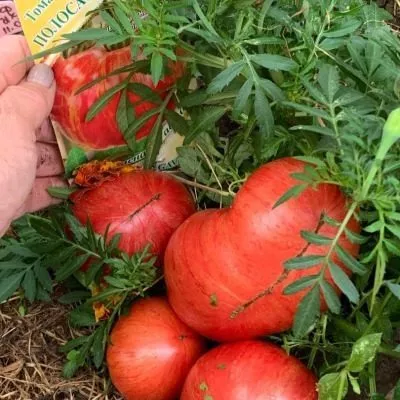 Благодаря крупному размеру (средняя масса 230-280 граммов) и уникальной окраске – красной с контрастными желтыми штрихами – эти томаты выполняют и декоративную функцию. Нарезка или салат с ними выглядят эффектно и аппетитно.