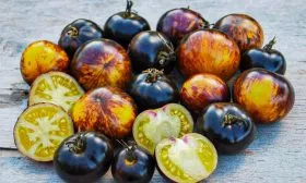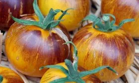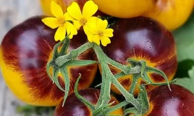 Томат сорта «Полосы былого» — это настоящее украшение грядки и гордость коллекционера. Его главная особенность — необыкновенная окраска: ярко-жёлтые плоды украшены эффектными фиолетово-чёрными полосами. Этот индетерминантный среднеспелый сорт порадует универсальными плодами с гармоничным вкусом и стабильной урожайностью при правильном уходе. Давайте узнаем, как вырастить эту красоту в своём огороде.
