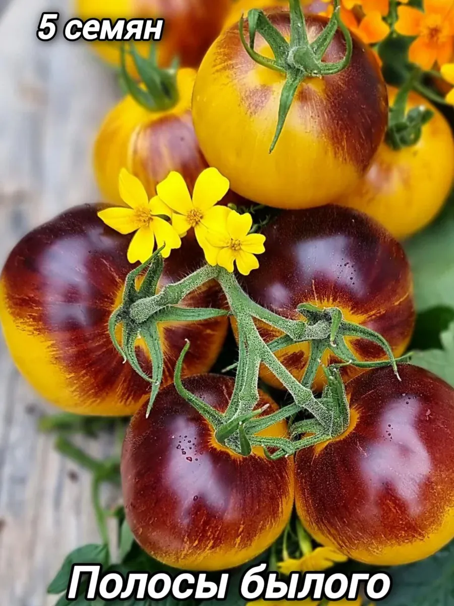 Томат сорта «Полосы былого» — это настоящее украшение грядки и гордость коллекционера. Его главная особенность — необыкновенная окраска: ярко-жёлтые плоды украшены эффектными фиолетово-чёрными полосами. Этот индетерминантный среднеспелый сорт порадует универсальными плодами с гармоничным вкусом и стабильной урожайностью при правильном уходе. Давайте узнаем, как вырастить эту красоту в своём огороде.