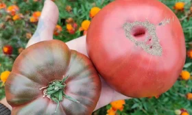 Срывать томаты нужно очень аккуратно, обязательно с плодоножкой. У плодов типа «бифштекс» часто наблюдается тонкая кожица у основания, и ее повреждение при отрыве открывает путь для инфекций и гнилей. Лучше всего использовать секатор или острые ножницы.