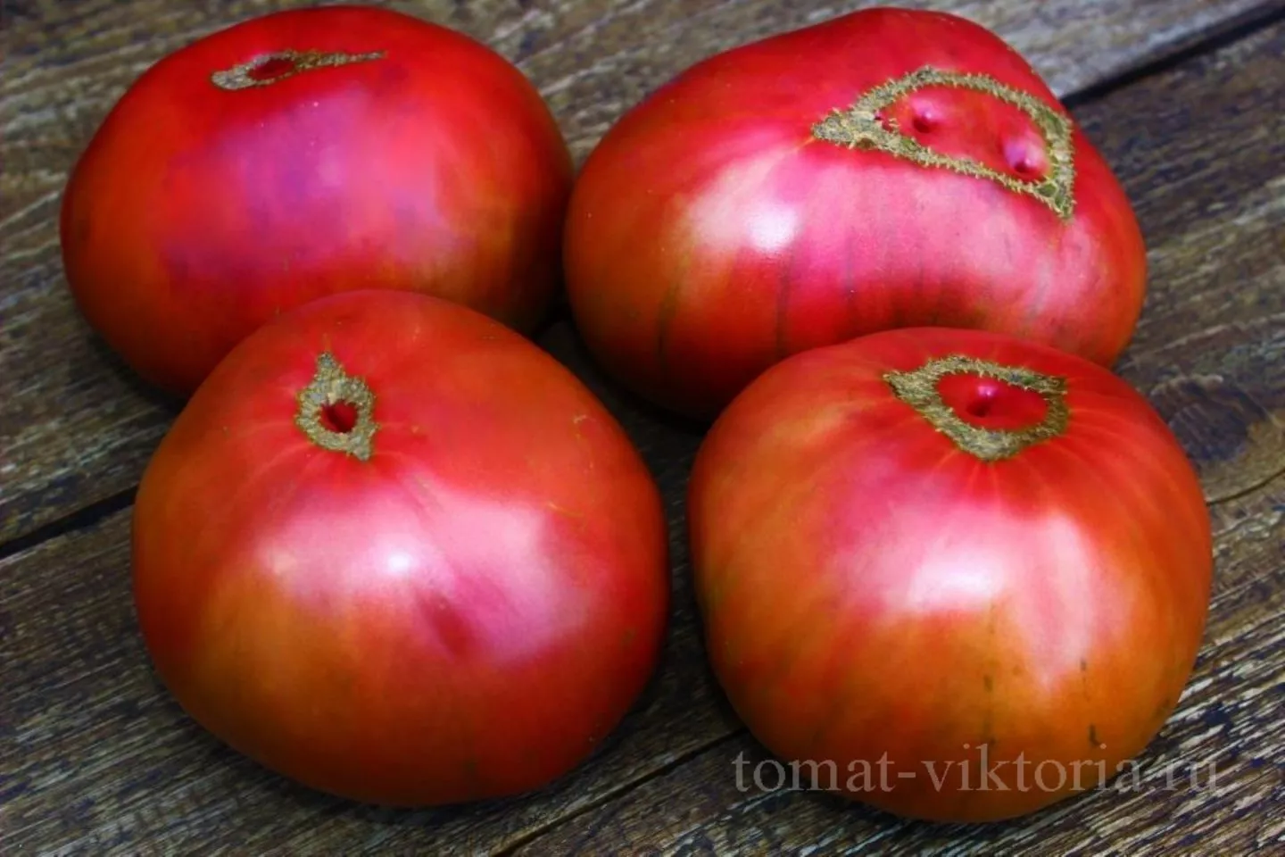 Главная отличительная черта — сложная окраска. Основной цвет зрелого плода — насыщенный малиновый. На его фоне, особенно в области плечиков (зона вокруг плодоножки), проявляется темный, фиолетовый оттенок, который усиливается при выращивании на ярком солнце. Интенсивность этого антоцианового (фиолетового) пигмента зависит от уровня освещенности и перепадов дневных и ночных температур.