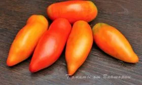 Кожица у плодов тонкая, но при этом достаточно плотная, что обеспечивает устойчивость к растрескиванию. Мякоть очень мясистая, плотной консистенции, на изломе сахаристая, с малым количеством семян и семенных камер. Плоды формируются в простых кистях, обычно по 5-7 штук в каждой.