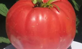 Главная гордость сорта – его плоды, полностью оправдывающие название «монстр». Масса варьируется от 500 до 1500 граммов. Первые завязи на нижних кистях, как правило, самые крупные. Форма плоскоокруглая, часто с выраженной ребристостью у плодоножки.