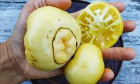 Вкусовой профиль — сладкий, гармоничный, с тонкой фруктовой ноткой и минимальной, часто практически незаметной кислинкой. Эта сбалансированность является типичным признаком многих желтоплодных томатов и высоко ценится в свежем потреблении.