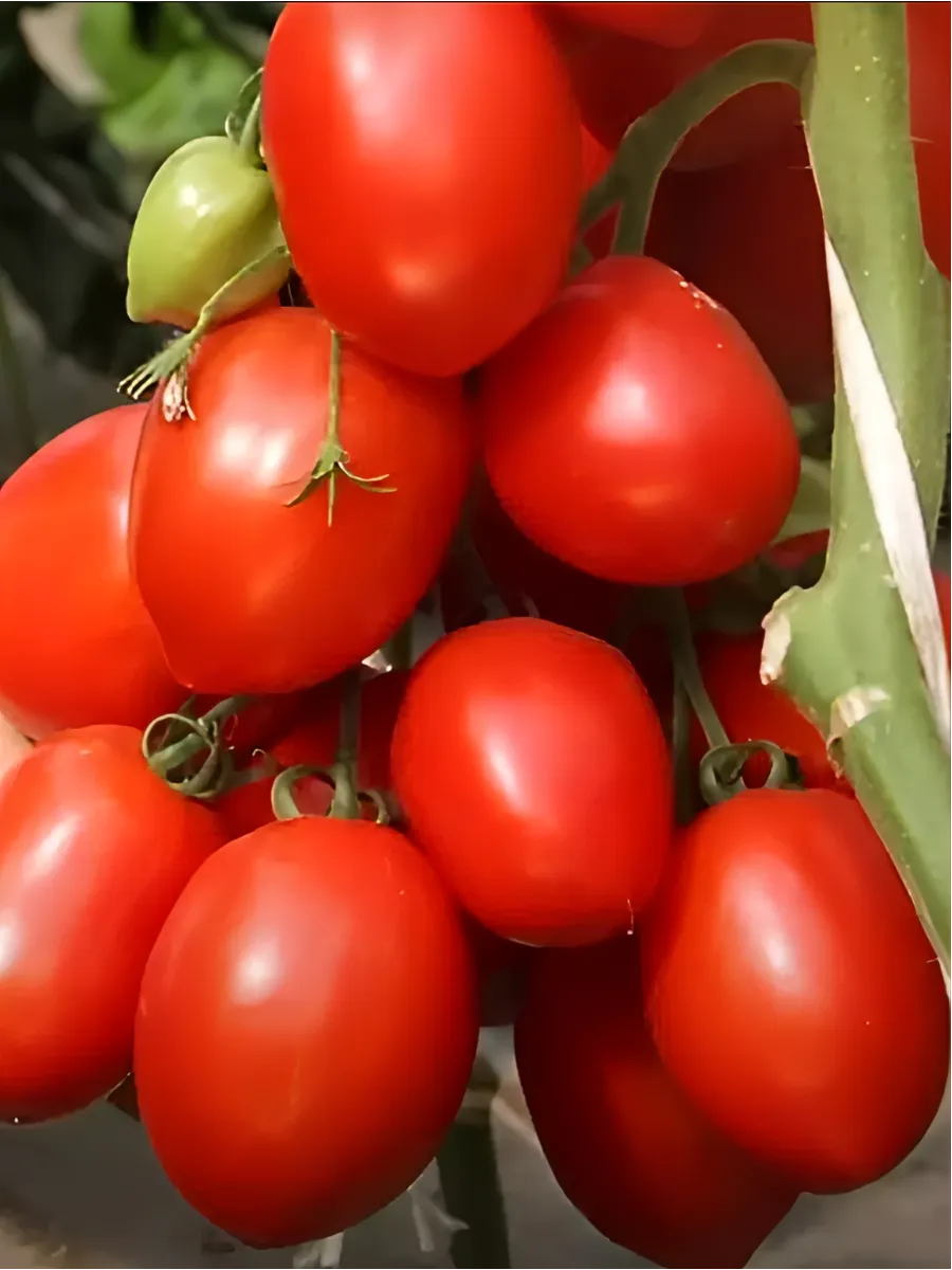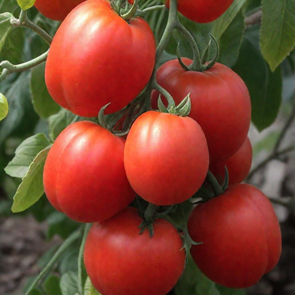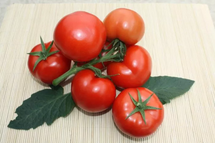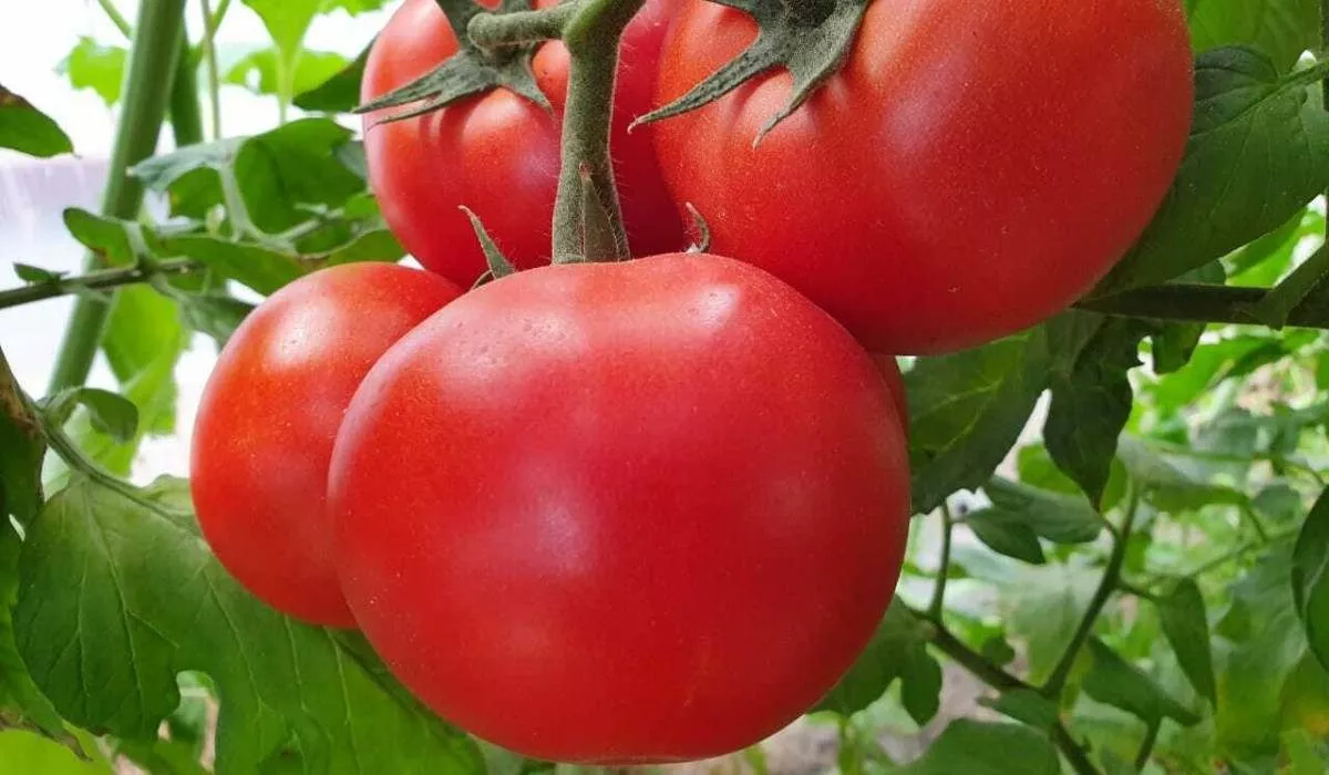 Плоды — главная гордость этого гибрида. Они имеют практически идеальную округлую форму, ровные и гладкие, без выраженной ребристости у плодоножки. В стадии полной зрелости приобретают насыщенный, равномерный красный цвет без зеленого пятна у плодоножки, что свидетельствует о полном вызревании.