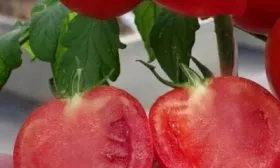 Мякоть мясистая, сочная, с хорошо сбалансированным классическим вкусом. Количество семенных камер умеренное. Плоды завязываются и созревают в простых кистях, обычно по 5-7 штук в каждой, что обеспечивает дружную отдачу урожая и удобство сбора.