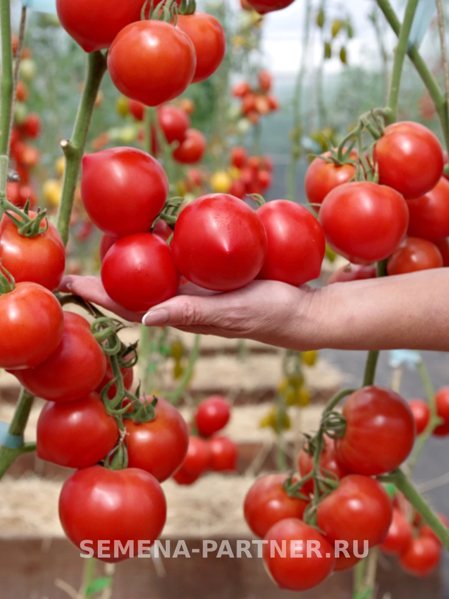 Мякоть мясистая, сочная, с хорошо сбалансированным классическим вкусом. Количество семенных камер умеренное. Плоды завязываются и созревают в простых кистях, обычно по 5-7 штук в каждой, что обеспечивает дружную отдачу урожая и удобство сбора.