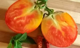 Такая яркая и необычная окраска делает плоды этого сорта не только вкусным, но и эффектным украшением летних салатов и овощных нарезок. Гладкая, но плотная кожица надежно защищает сочную и сахаристую мякоть внутри.