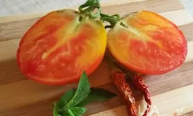 - Вяление и сушка. Мякоть хорошо подходит для приготовления вяленых томатов в дегидраторе или духовке. Дольки сохраняют форму и дают концентрированный сладковатый вкус.