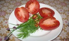 Цвет зрелого плода — классический насыщенно-красный, без зеленого пятна у плодоножки. Мякоть плотная, сочная, с хорошим классическим томатным вкусом. Кожица прочная, но не грубая, что предохраняет плоды от растрескивания, особенно при соблюдении стабильного полива.