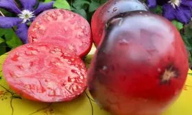 На разрезе открывается мясистая, сочная, почти без пустот мякоть красно-малинового цвета. Семенных камер немного, семян содержится небольшое количество. Такая структура и определяет высокую товарность и универсальность использования плодов — они хороши как для свежих салатов, так и для переработки на густые соусы.