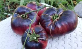 Для немедленного употребления в пищу дожидаются полного созревания на кусте, когда плод приобретает равномерную пурпурно-бордовую окраску с темными полосами и выраженной антоциановой «шапочкой». Срезать томаты рекомендуется секатором или острыми ножницами вместе с плодоножкой, чтобы не повредить кожицу и не создать ворота для инфекции.