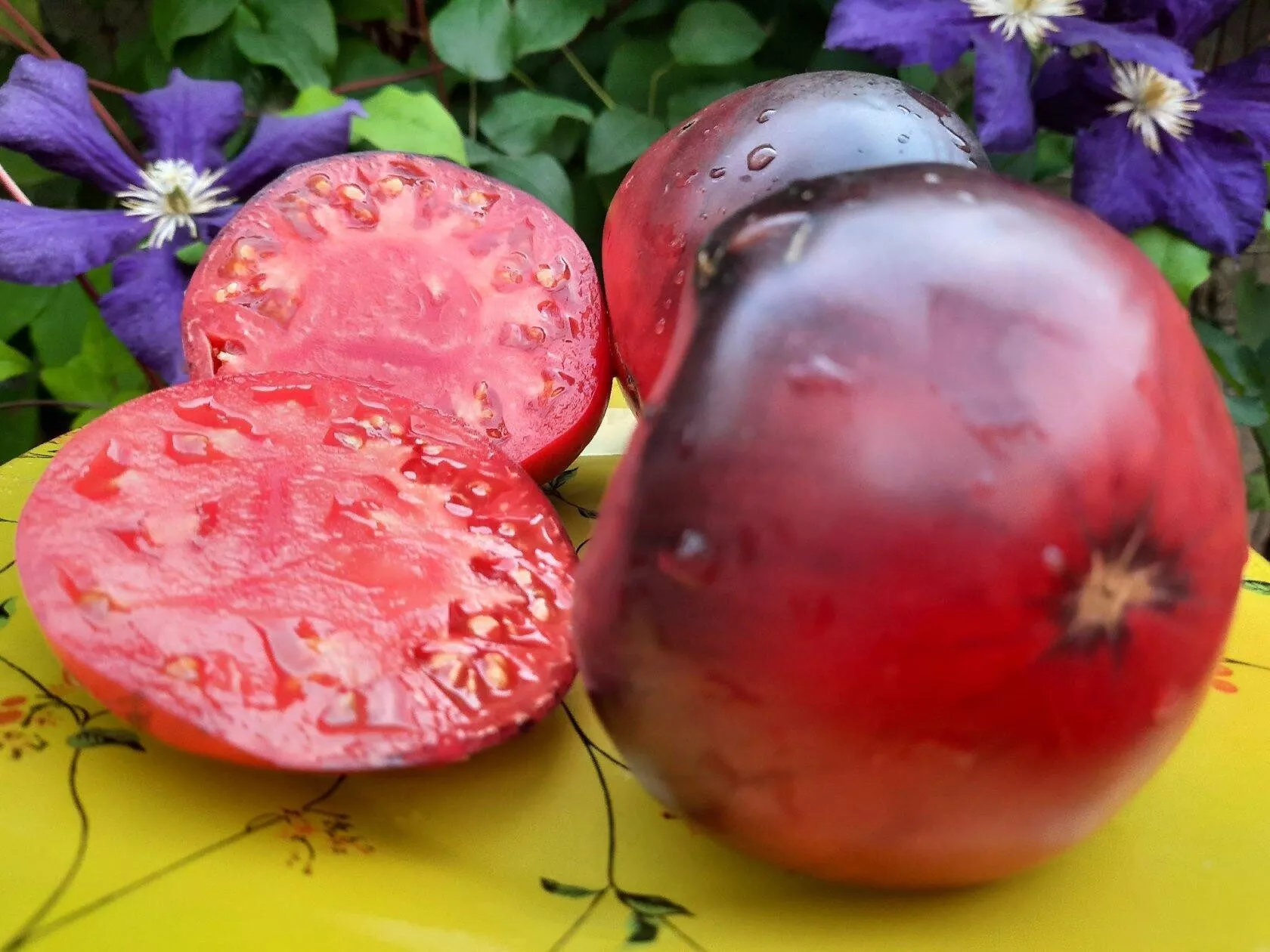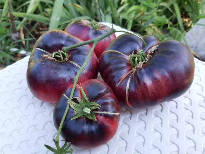 Для немедленного употребления в пищу дожидаются полного созревания на кусте, когда плод приобретает равномерную пурпурно-бордовую окраску с темными полосами и выраженной антоциановой «шапочкой». Срезать томаты рекомендуется секатором или острыми ножницами вместе с плодоножкой, чтобы не повредить кожицу и не создать ворота для инфекции.