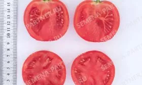 | Цвет зрелого плода | Розовый | Окрас указывает на более нежную и сладкую мякоть по сравнению с классическими красноплодными томатами, с меньшим содержанием кислот. |