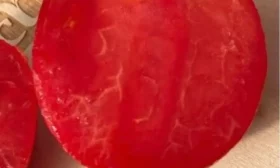Плоды крупные, их масса соответствует заявленному диапазону в 180-220 граммов. Такие томаты считаются мясистыми (биф-томатами). Кожица у них плотная, но не жесткая, что является ключевым фактором: она обеспечивает хорошую устойчивость к растрескиванию при перепадах влажности почвы, но при этом не ощущается при употреблении в свежем виде.