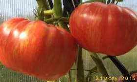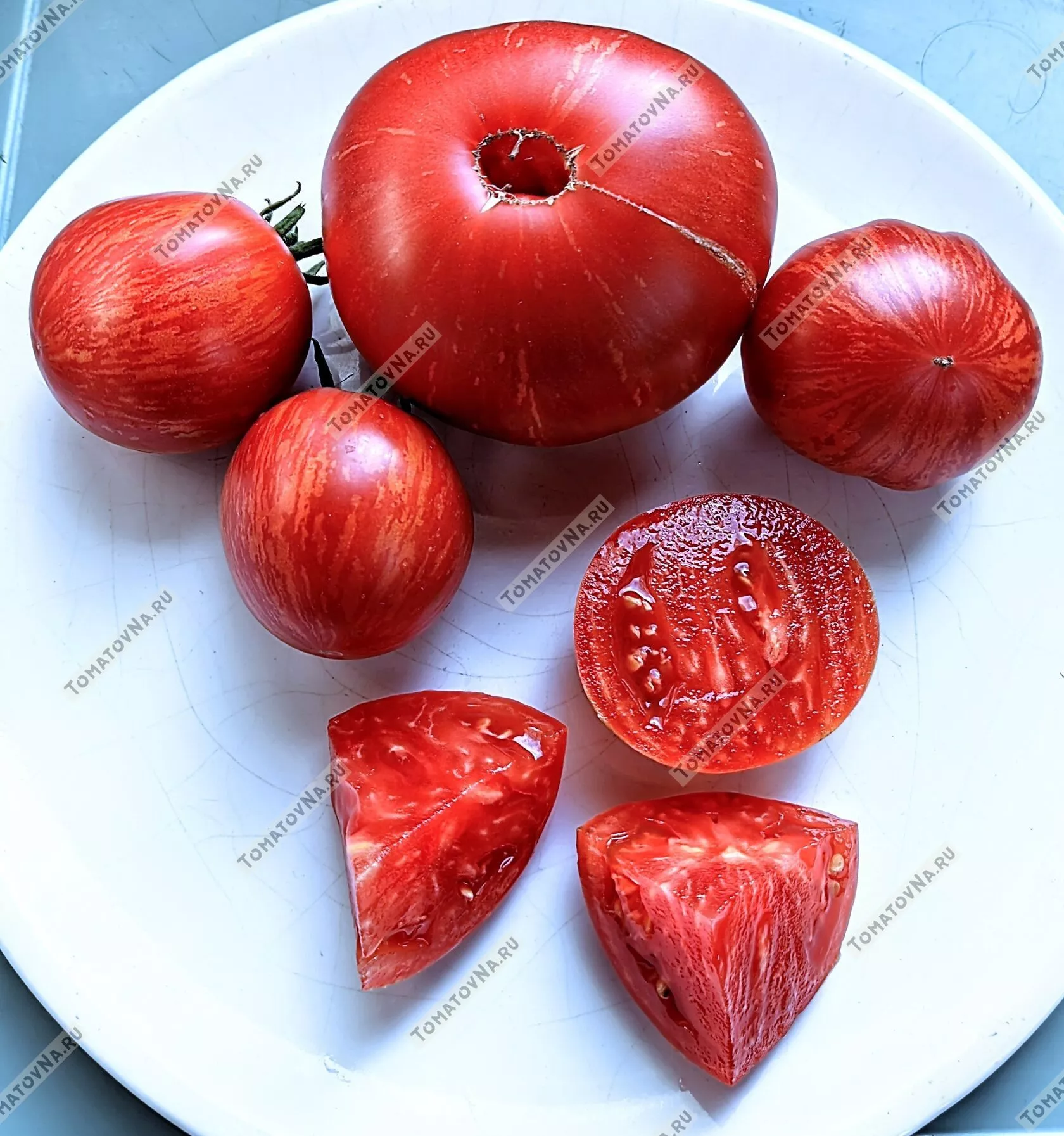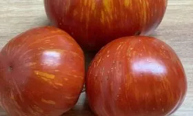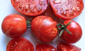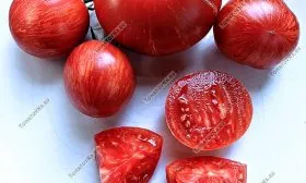 Сбор урожая этого полудетерминантного сорта имеет свои нюансы. Из-за высоты куста и крупных плодов сбор лучше проводить регулярно, не допуская перегрузки растения. Снимать томаты рекомендуется в стадии полной спелости, когда на красном фоне кожицы четко проступают характерные оранжево-зеленоватые полоски — именно тогда раскрывается их изумительный, сбалансированный вкус.