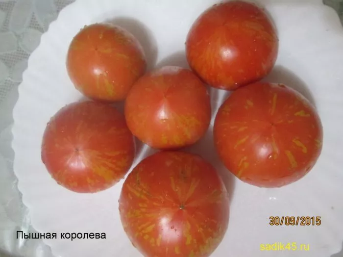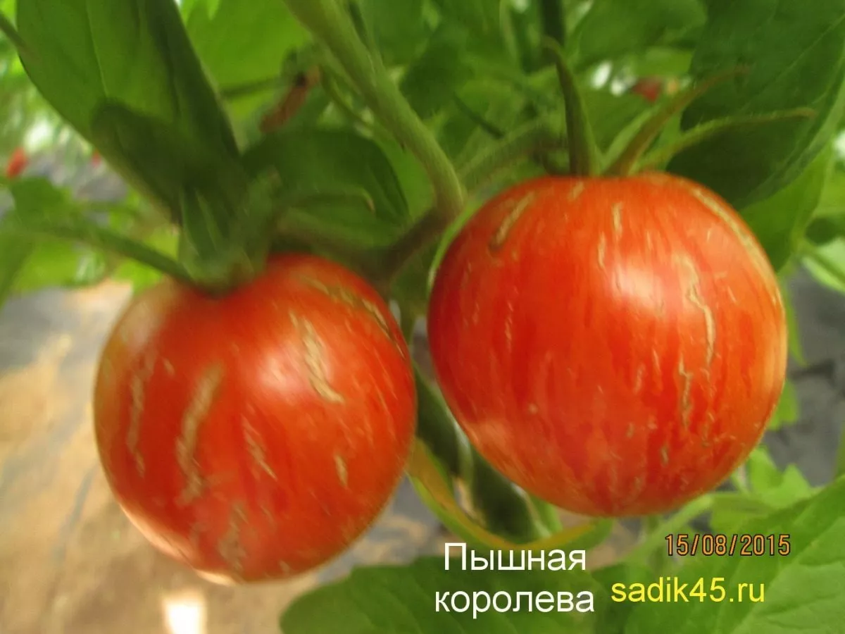 Среди многообразия томатов сорт «Пышная королева» выделяется своей стабильной урожайностью и необычной окраской плодов. Этот полудетерминантный сорт, достигающий в высоту до 170 см, дарит крупные плоды массой до 300 граммов. Их сладкий вкус с приятной кислинкой и яркие полоски на красном фоне никого не оставят равнодушным. Давайте подробнее узнаем об особенностях выращивания и ухода за этим достойным сортом.