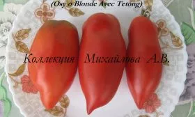 Окрашивание происходит в два этапа. В технической спелости томаты имеют кремово-желтый, «блондинистый» оттенок. По мере созревания они набирают ярко-красный цвет, но сохраняют генетически обусловленную особенность — антоциановое пятно (напыление) в зоне плодоножки.