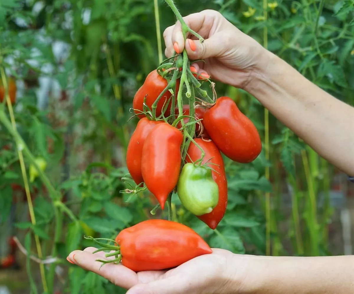 Сбор плодов этого сорта действительно доставляет удовольствие благодаря дружному созреванию в кистях. Плотная кожица, о которой уже шла речь, надежно защищает от растрескивания даже при избыточной влажности, что особенно ценно в дождливое лето. Снимать томаты можно в две стадии: в полной биологической спелости для немедленного употребления или в бланжевой (бурой) для последующего дозаривания и более длительного хранения.