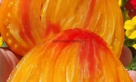 Мякоть очень плотная, мясистая (так называемого салатного типа), с выраженной сахаристостью на изломе. Внутри плод разделен на несколько крупных семенных камер, но количество семян в них незначительно.