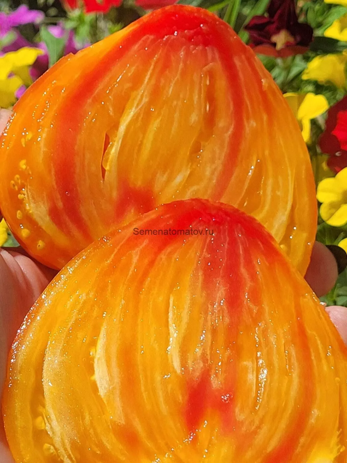 Мякоть очень плотная, мясистая (так называемого салатного типа), с выраженной сахаристостью на изломе. Внутри плод разделен на несколько крупных семенных камер, но количество семян в них незначительно.