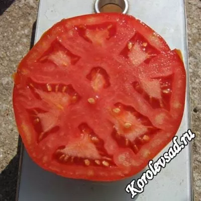 Мякоть отличается хорошей мясистостью и сочностью. Количество семенных камер умеренное, семена распределены в них равномерно. Такое строение обеспечивает баланс между плотностью и нежностью консистенции. Плоды не водянистые, что положительно сказывается на вкусовых качествах и лежкости собранного урожая.
