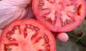 Мякоть многокамерная, очень плотная и сахаристая на излом, с небольшим количеством семян. Вкусовые качества соответствуют заявленным как превосходные: вкус гармоничный, насыщенно-сладкий с легкой, сбалансированной кислинкой, что характерно для качественных розовоплодных томатов.