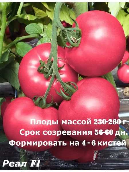 Ранний срок созревания, заявленный для сорта Реал, выделяет его среди большинства розовоплодных и крупноплодных томатов. Для данной категории типичны средние и поздние сроки отдачи урожая. Способность формировать плоды массой 230-260 граммов в ранние сроки является значительным селекционным достижением.