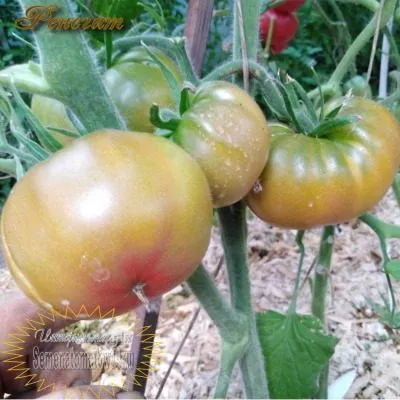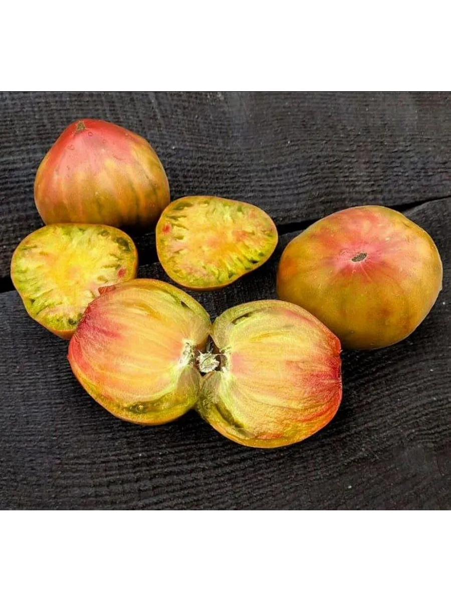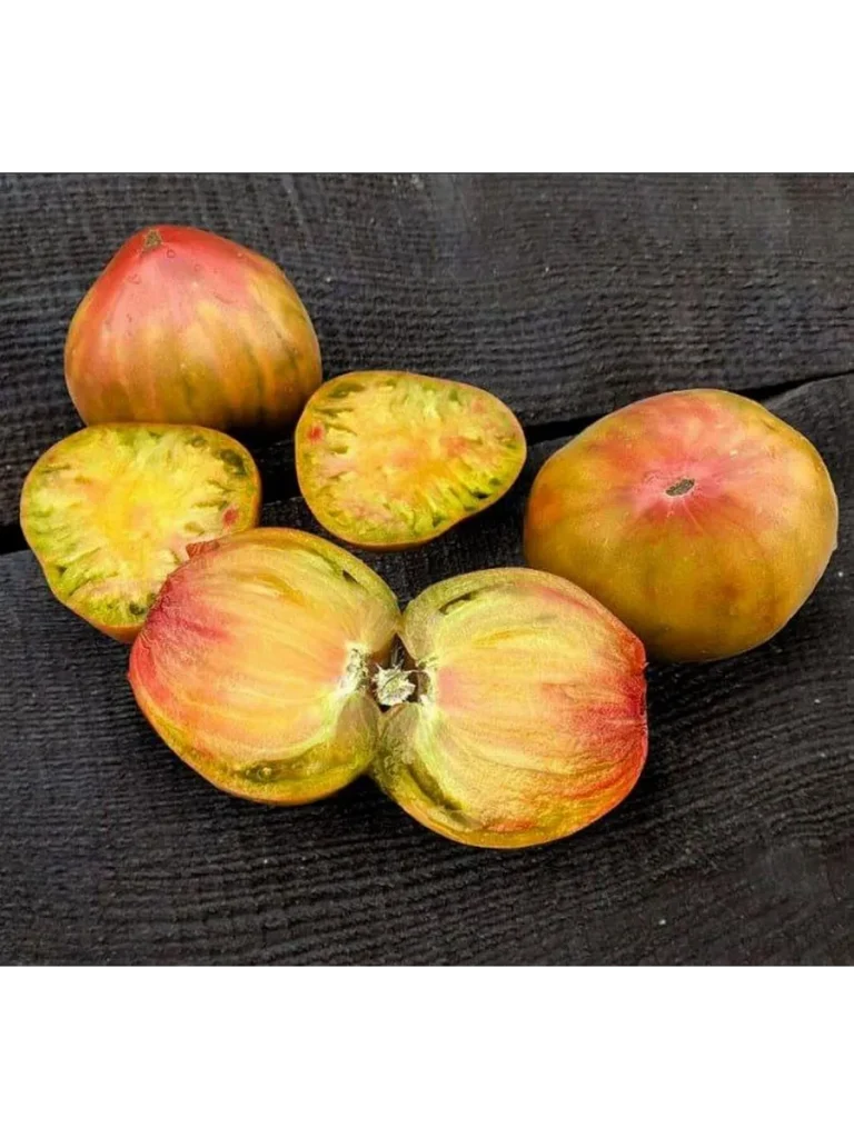 Внешний вид плодов — визитная карточка этого сорта. Крупные, массой от 250 до 400 граммов, плоскоокруглые помидоры привлекают внимание не столько формой, сколько уникальной, «хаотичной» окраской. На одном плоде могут сочетаться участки зеленого, коричневого (часто описываемого как шоколадный) и розового цветов в самых разных пропорциях, что делает каждый томат неповторимым.