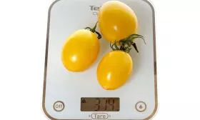 В технической спелости плоды светло-зеленые, без темного пятна у плодоножки. По мере созревания они равномерно окрашиваются в насыщенный ярко-желтый цвет. Масса каждого томата стабильна и составляет 70-110 граммов. Плоды в кисти и на всем кусте выровнены по размеру, что является признаком высокой товарности и удобства при переработке.