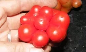 Главная отличительная черта — форма плода. Это не просто ребристый или перцевидный томат. Плод представляет собой гроздь из 10-15 полноценных, но сросшихся бочками маленьких помидорок-черри. Каждую такую дольку можно отломить, как дольку мандарина. Средняя масса всей такой «грозди» колеблется от 150 до 400 граммов.