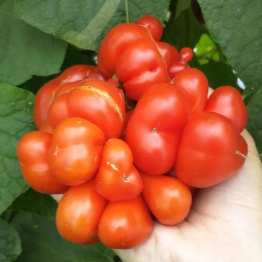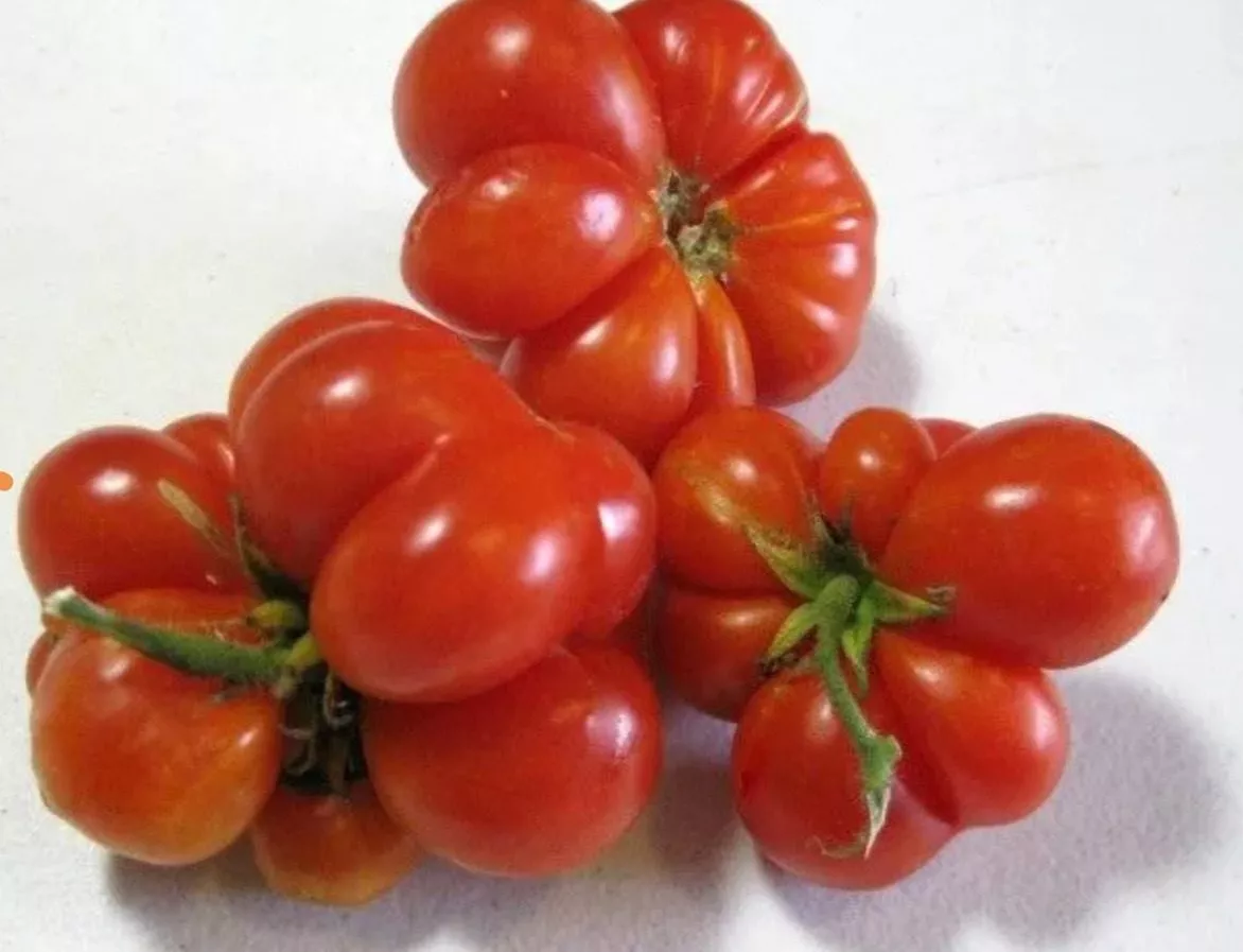 Главная отличительная черта — форма плода. Это не просто ребристый или перцевидный томат. Плод представляет собой гроздь из 10-15 полноценных, но сросшихся бочками маленьких помидорок-черри. Каждую такую дольку можно отломить, как дольку мандарина. Средняя масса всей такой «грозди» колеблется от 150 до 400 граммов.