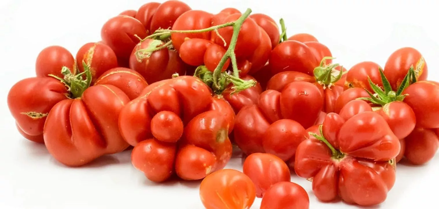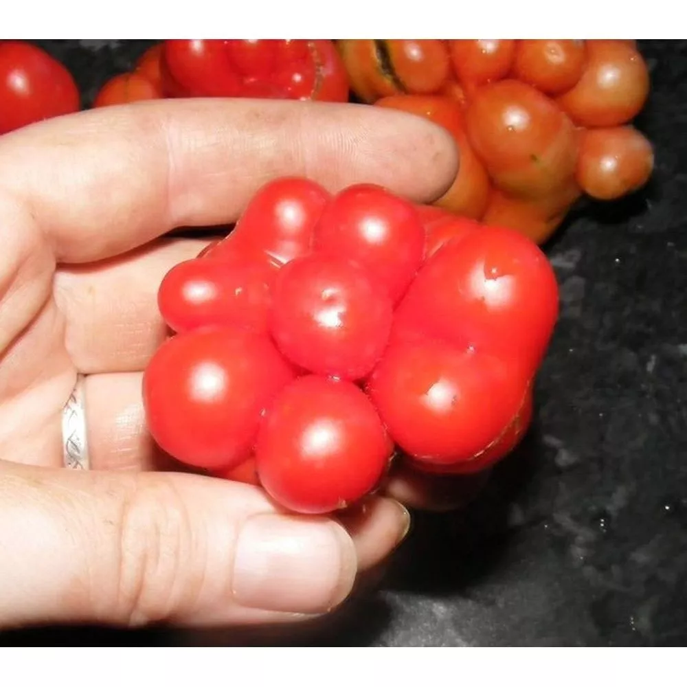 Внешний вид этого томата невозможно спутать ни с одним другим. Если большинство сортов стремятся к округлости или вытянутости, то Рейсетомейт ломает все шаблоны. Его плод представляет собой не единый помидор, а сросшийся букет из 10-15 миниатюрных плодиков. Каждая такая долька является полноценным томатом черри со своей семенной камерой и лишь в основании прочно соединена с соседними.