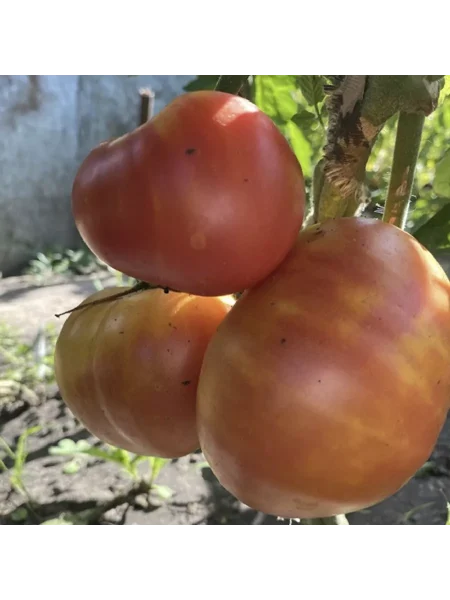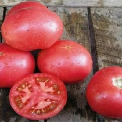 Плоды имеют плоско-округлую, слегка ребристую форму, характерную для биф-томатов (крупноплодных мясистых томатов). Их главная отличительная черта — ярко-малиновый цвет зрелой кожицы, который сигнализирует о высоком содержании ликопина и сахаров. Мякоть многокамерная, очень плотная и мясистая, без пустот, с небольшим количеством семян.