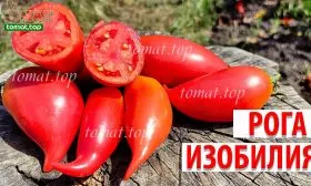 Название сорта «Рога Изобилия» дано не случайно и точно описывает его главную отличительную черту — форму плода. Помидоры имеют удлиненную, перцевидную форму с характерной загнутой и заостренной верхушкой, что визуально напоминает рог. Эта особенность является стабильным сортовым признаком.
