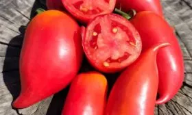 - Для цельноплодного консервирования. Благодаря прочной кожице и среднему размеру (около 200 г) томаты отлично подходят для маринования и засолки. Их нестандартная перцевидная форма с загнутым кончиком делает заготовки особенно привлекательными.