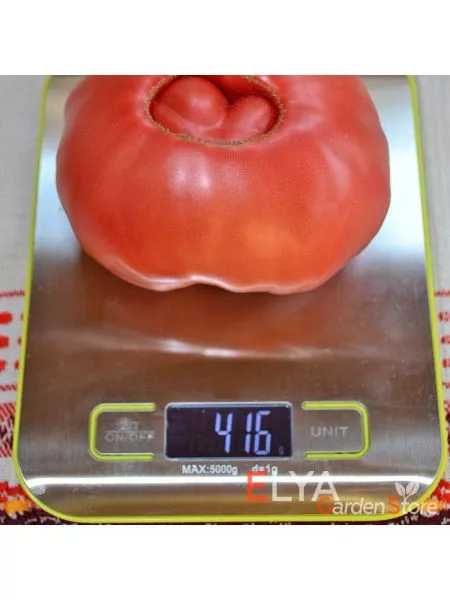 Главная гордость сорта — его плоды. Их масса заявлена от 500 граммов и более, причем первые кисти часто формируют настоящих гигантов. Для получения таких крупных томатов рекомендуется нормирование количества завязей в кисти, оставляя 3-4 наиболее развитых цветка.