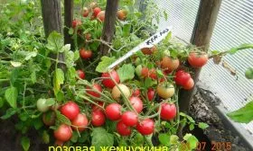 Это необходимо, чтобы тяжелеющие кисти с плодами массой 90-110 граммов не ложились на землю, что предотвращает загнивание и поражение слизнями. Формирование простое: растение ведут в 2-3 стебля.