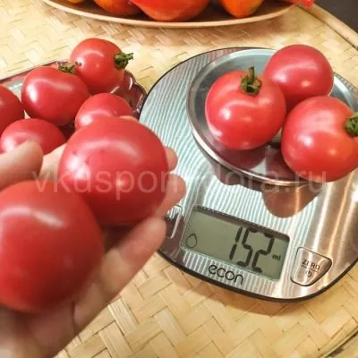 Плоды имеют правильную округлую форму, иногда со слабой приплюснутостью у плодоножки. Их средняя масса, составляющая 90-110 граммов, считается оптимальной для универсального использования. Такой размер идеально подходит для цельноплодного консервирования, так как томаты плотно укладываются в банку и равномерно прогреваются.