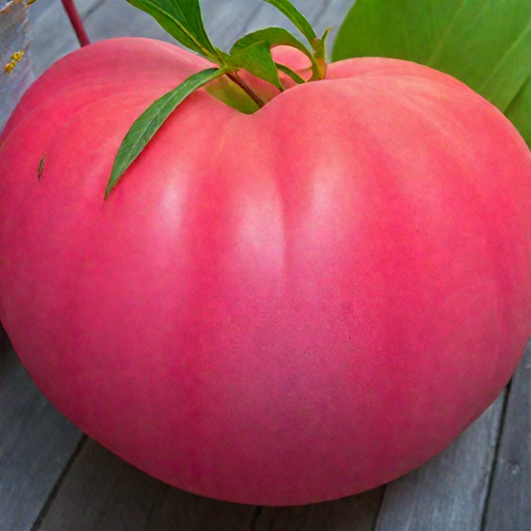 Полностью зрелый плод приобретает равномерный насыщенный розовый цвет без зеленого пятна у плодоножки. Кожица тонкая, но при этом достаточно плотная и эластичная. Это важная особенность, которая, при соблюдении режима полива, защищает крупные плоды от растрескивания.