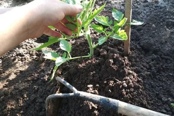 - Саженцы помещают в лунки вертикально, свободное пространство закидывают грунтом, уплотняют его, формируя вокруг стеля лунку — для полива. Если рассада вытянулась, часть её стебля размещают в лунке горизонтально.